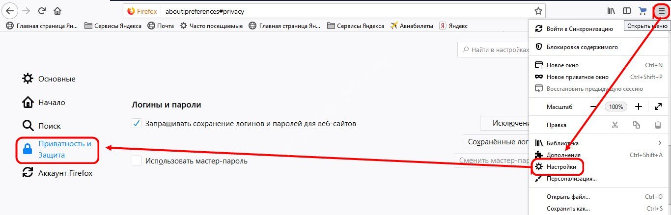 Чтобы экспортировать пароли внутри браузера, необходимо: