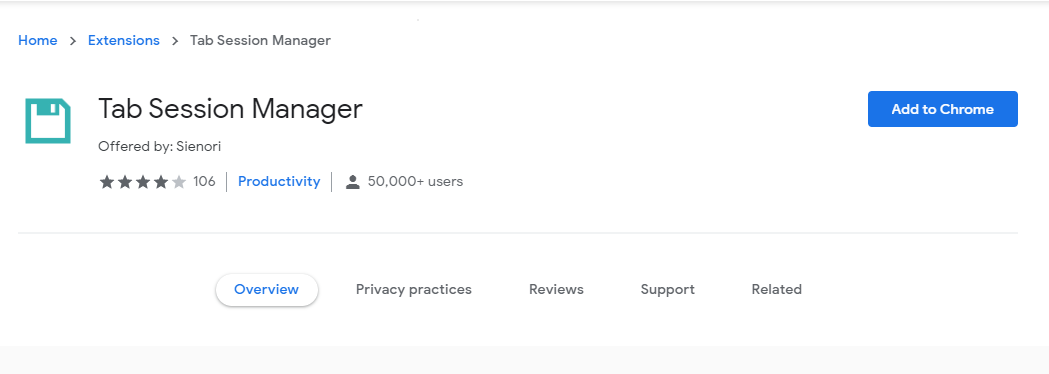 Tap Session Manager – расширение для сохранения и восстановления вкладок