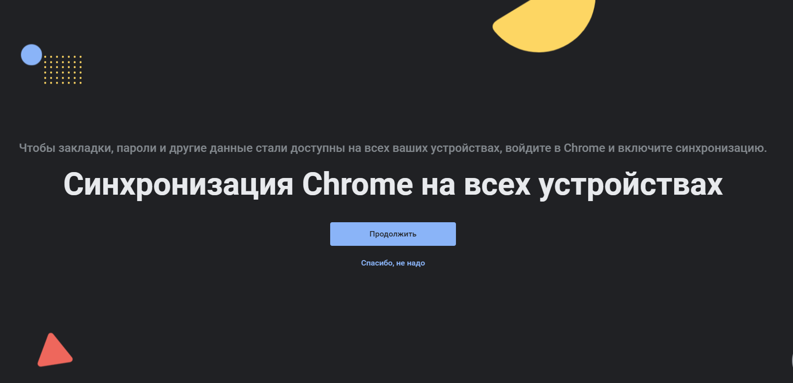 После установки браузер сам предлагает провести синхронизацию. В случае согласия, пользователя перекидывает на авторизацию, а далее, соответствующий вопрос задается повторно.