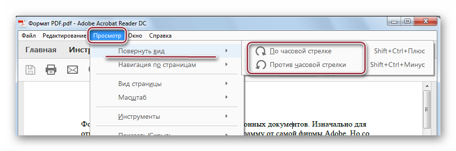 Adobe Reader – самый распространенный просмотрщик PDF-файлов. В нем доступны минимальные функции редактирования, в том числе и поворот страниц.