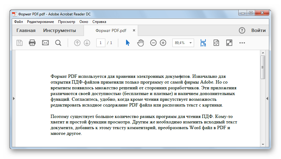 Окно программы с открытым PDF.