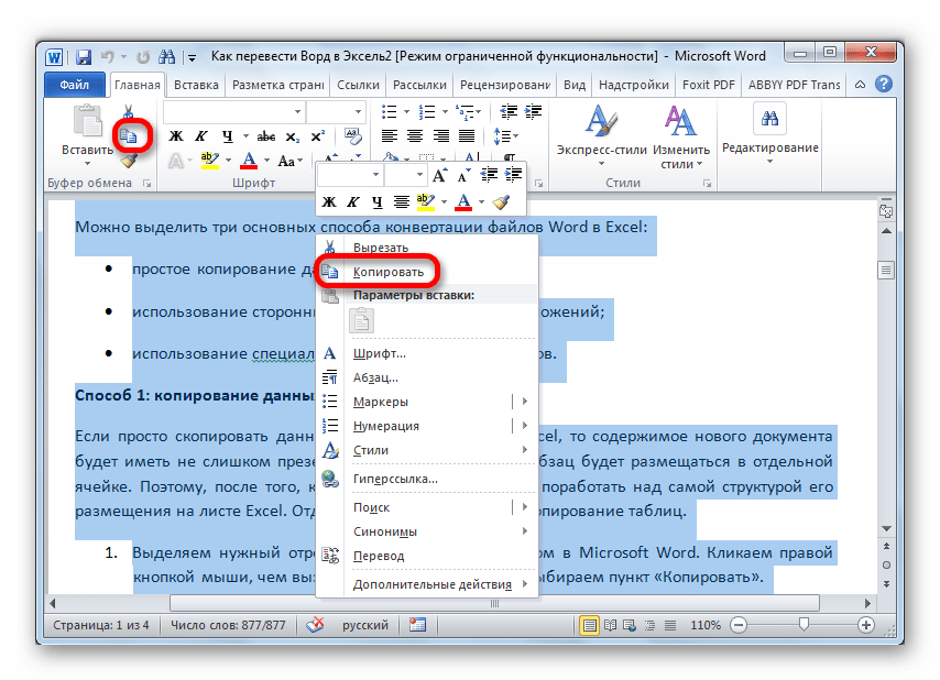 Можно выделить три основных способа конвертации файлов Word в Excel: