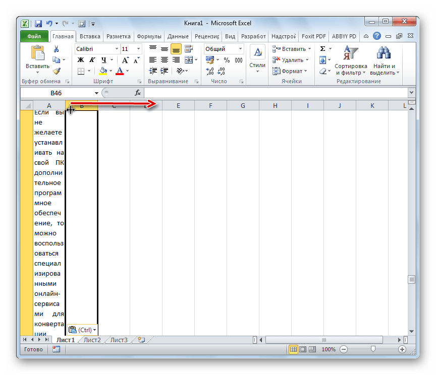 Если просто скопировать данные из документа Word в Excel, то содержимое нового документа будет иметь не слишком презентабельный вид. Каждый абзац будет размещаться в отдельной ячейке. Поэтому, после того, как текст скопирован, нужно поработать над самой структурой его размещения на листе Excel. Отдельный вопрос составляет копирование таблиц.