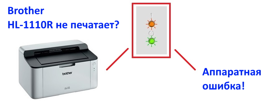 Что делать, если на принтере Brother HL-1110R HL-1112R HL-1200R HL-1210WR HL-1212WR замигали обе лампочки, и он не печатает?
