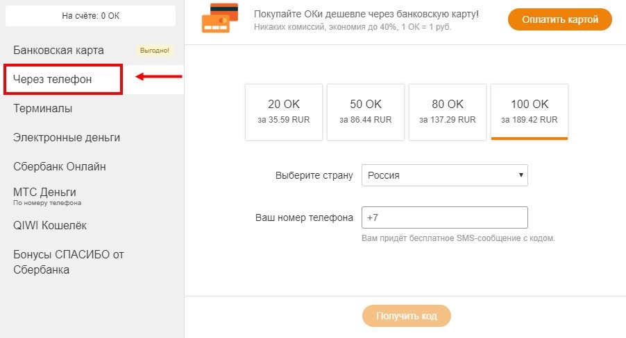 Из трех предложенных вариантов выбирается нужная карта. Далее выбирается вариант оплаты виртуальных денег. Как оплата подтвердится, ОКи зачислятся на счет друга.