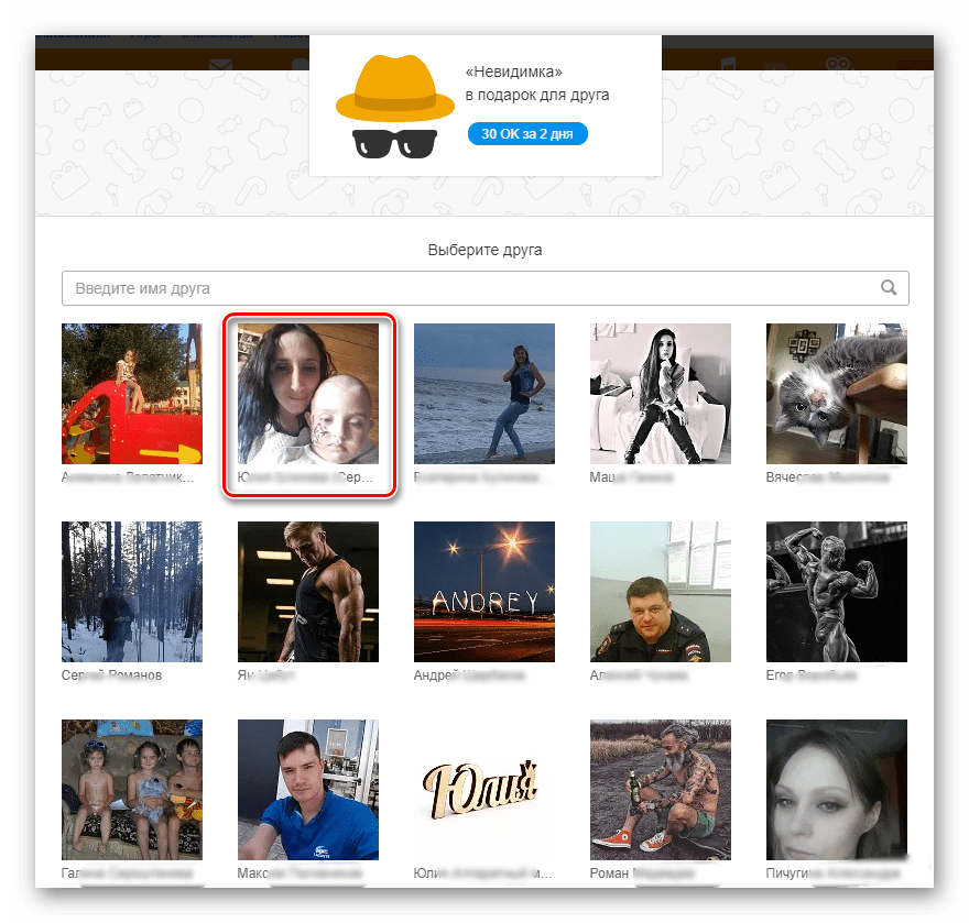 - В открывшемся окне кликаем левой кнопкой мыши по аватарке человека, которому вручаем подарок.