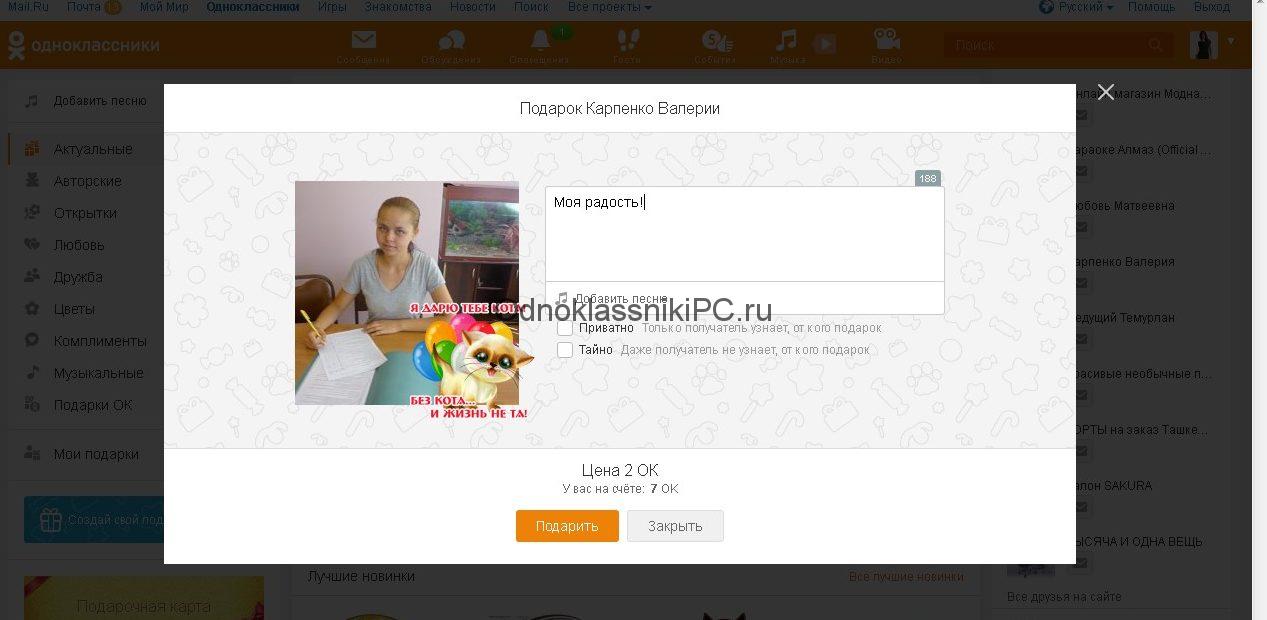 Итак, давайте считать, что у вас уже есть Оки, которые нужно подарить или просто отправить другому пользователю. Совсем недавно появилась новая возможность, которая позволяет прикреплять Оки к подарку.
