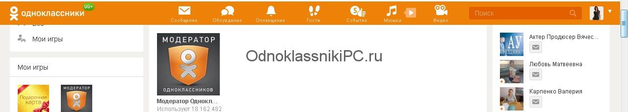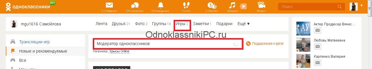 После нажатия на категорию «Игры» страница обновится, затем появится поисковая строка, в которой нужно напечатать «Модератор одноклассников».