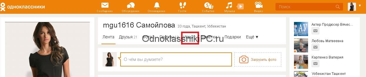 Для того чтобы отправить другу тематическую картинку, используя первый способ, следует подробно ознакомиться с правилами данного приложения социальной сети. На личной странице есть множество вкладок, а именно: «Лента», «Друзья», «Фото», «Группы», «Игры», «Заметки», «Подарки», «Еще».