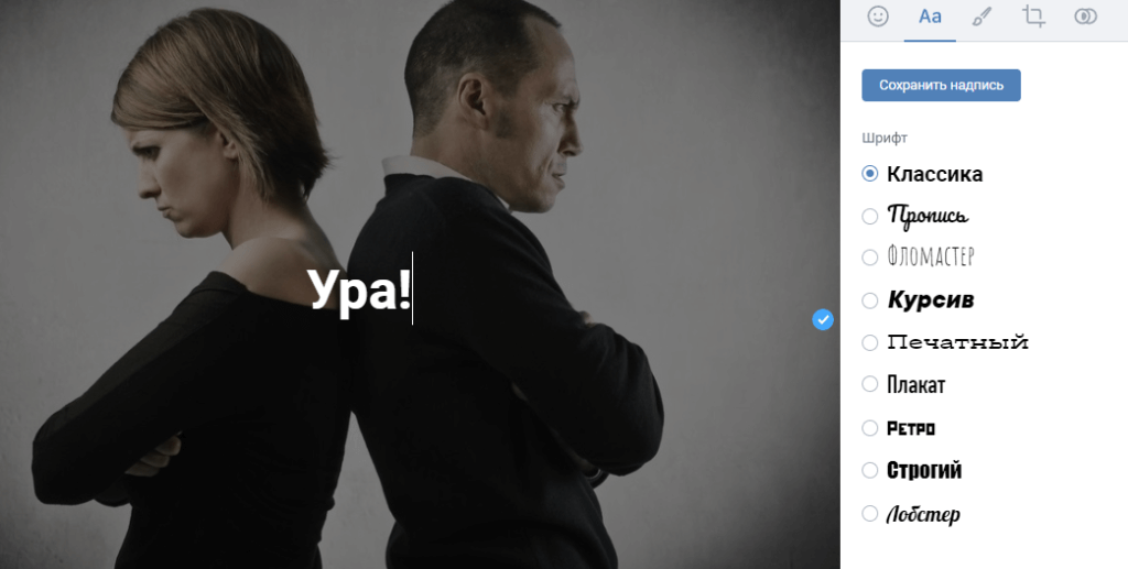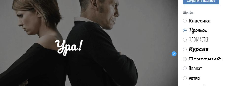 Интересный вариант с различными кирилистическими шрифтами. Очень быстро можно подобрать интересный вариант и сделать надпись и добавить ее на фотографию.