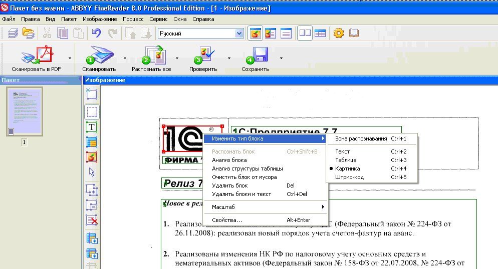 Особенности функции OCR программы ABBYY FineReader для ScanSnap