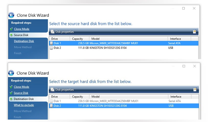 - Шаг 3. Выберите диск для копирования (исходный диск) и диск для копирования (целевой диск).