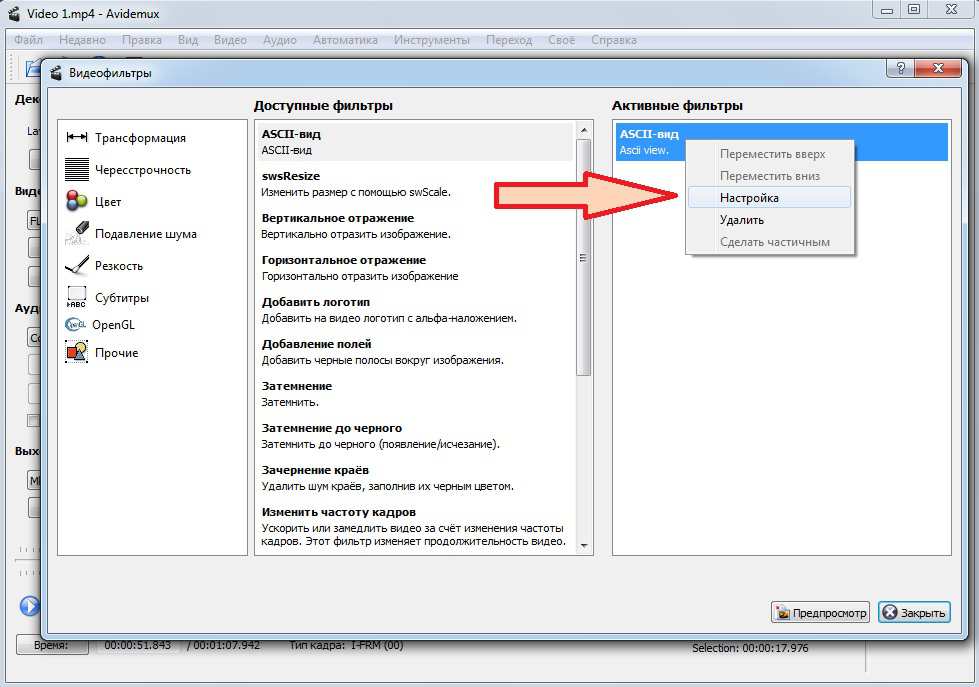 Поворот видео с помощью Avidemux