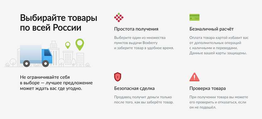 Сервис доставки через “Авито” обладает рядом преимуществ для покупателя. Самым главным плюсом является защита от потери денег: они переходят продавцу только после того, как товар будет забран из пункта приема Boxberry.