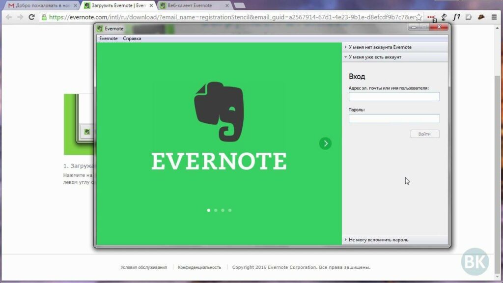 Работа с Evernote начинается с регистрации на официальном сайте.
