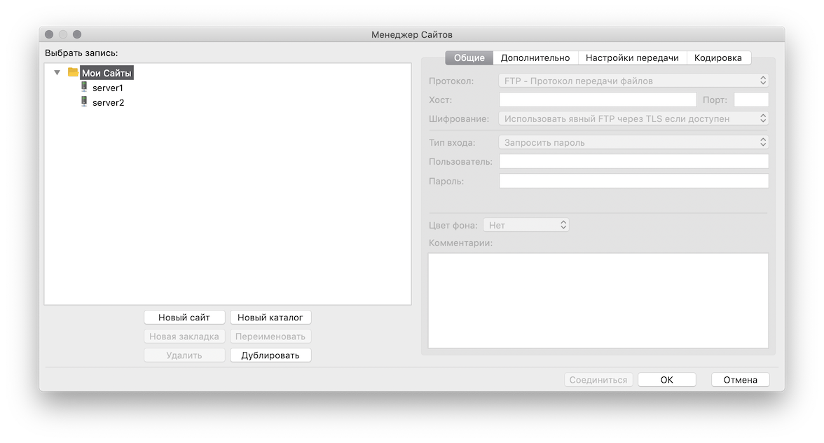 Интерфейс CuteFTP для MacOS.Работа с FTP в командной строке.