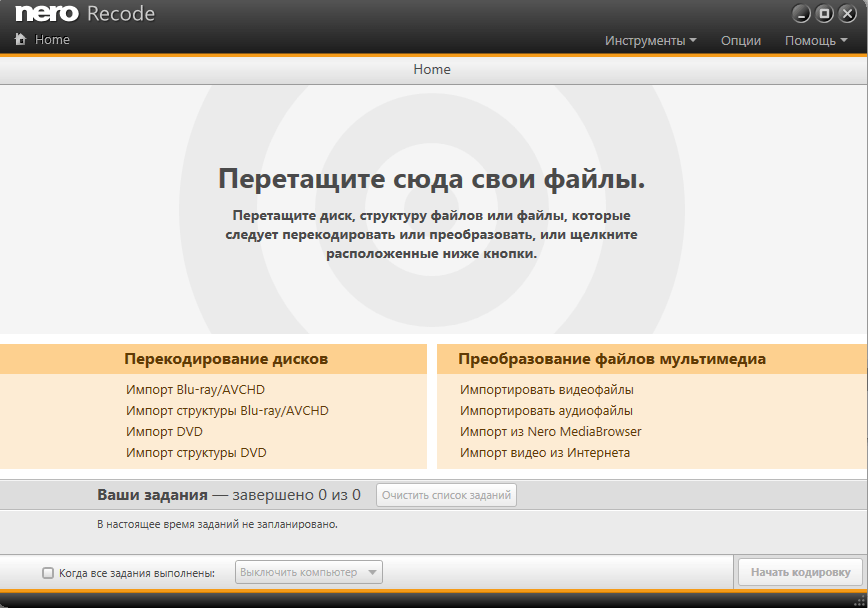 - Nero Recode. Инструмент для смены кодировки файлов под DVD. Работа с этой утилитой возможна только с DVD носителями, не имеющих защиты, так как Recode не предусматривает взлом защитных систем.