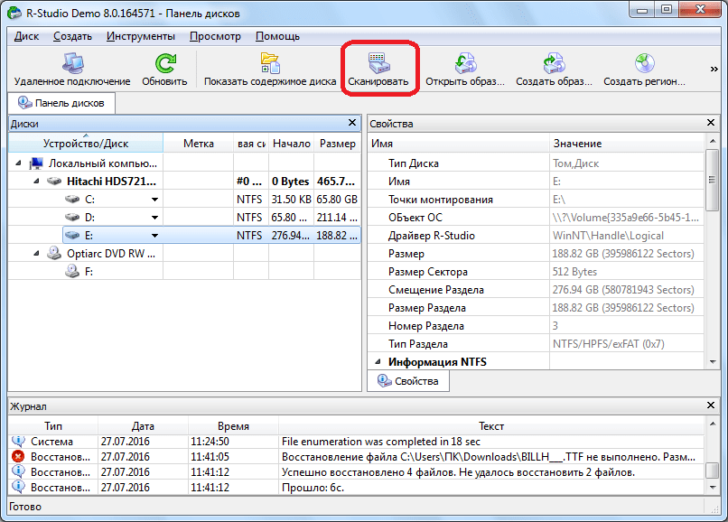3. Сканирование раздела
