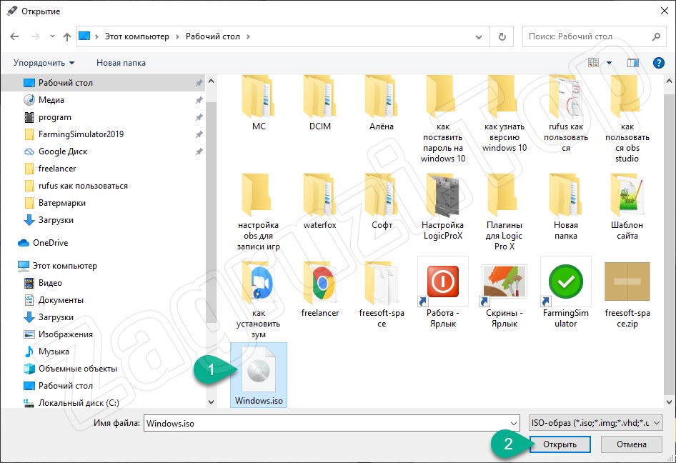 - Запустится файловый менеджер Windows, в котором мы должны будем указать путь к ISO-файлу.