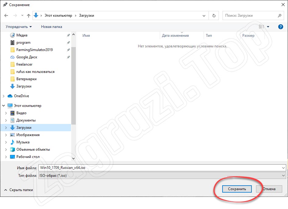- Дальше откроется окно проводника, в котором мы должны указать каталог для сохранения установочного образа Windows.