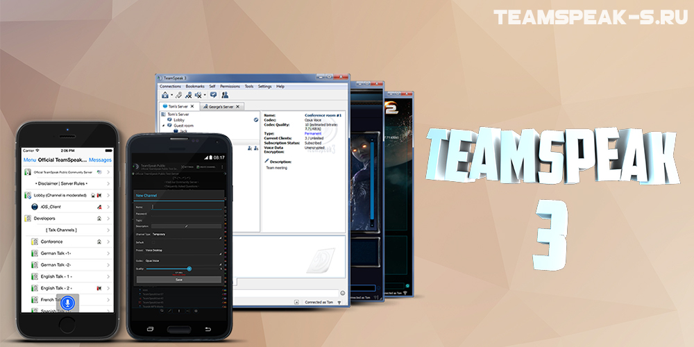 Продукт разработан кампанией TeamSpeak Systems GmbH и распространяется свободно, это значит, что можно скачать teamspeak 3 бесплатно с русским интерфейсом по прямой официальной ссылке с сайта тим спика. Программа имеет два варианта: серверный и клиентский. При этом на компьютере с максимально широким каналом устанавливается первый, образуя сервер, к которому подключаются остальные пользователи-клиенты.