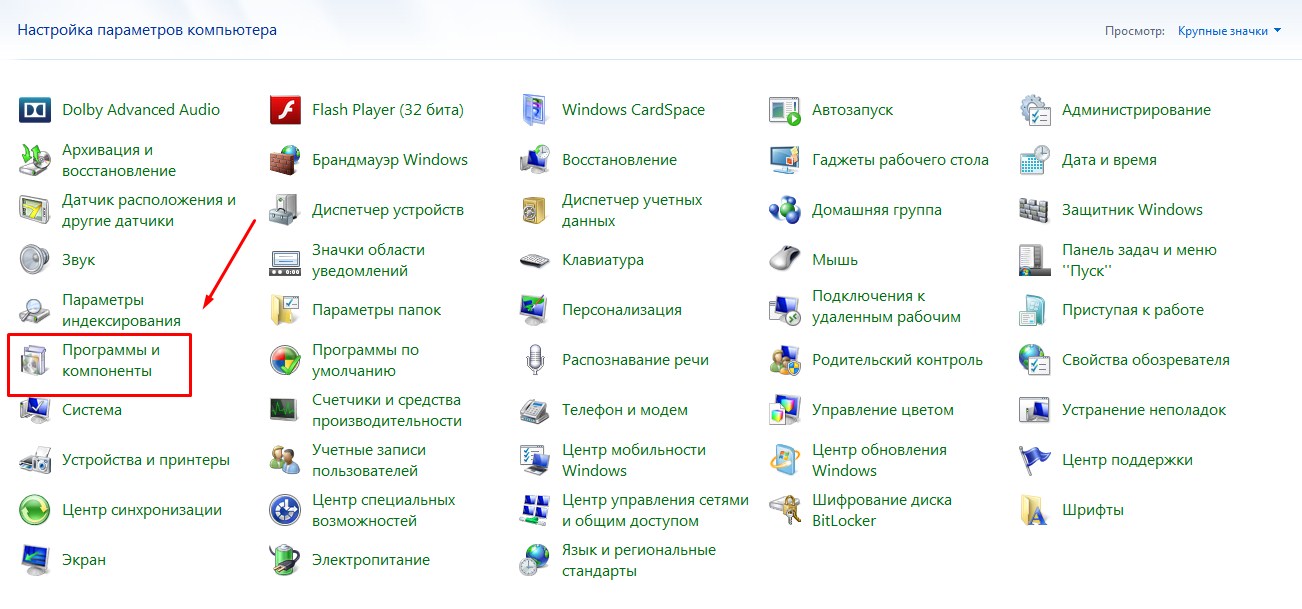 Теперь ищем раздел «программы и компоненты»