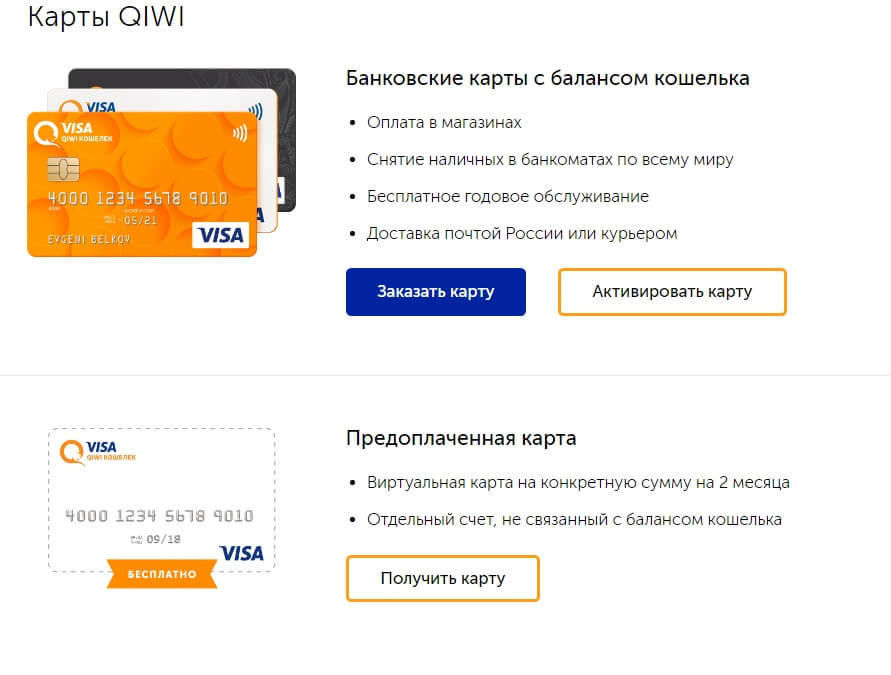 - Qiwi Visa Vurtual – предоплаченная виртуальная карта с заранее установленной суммой;