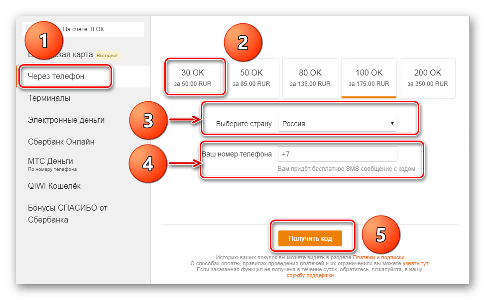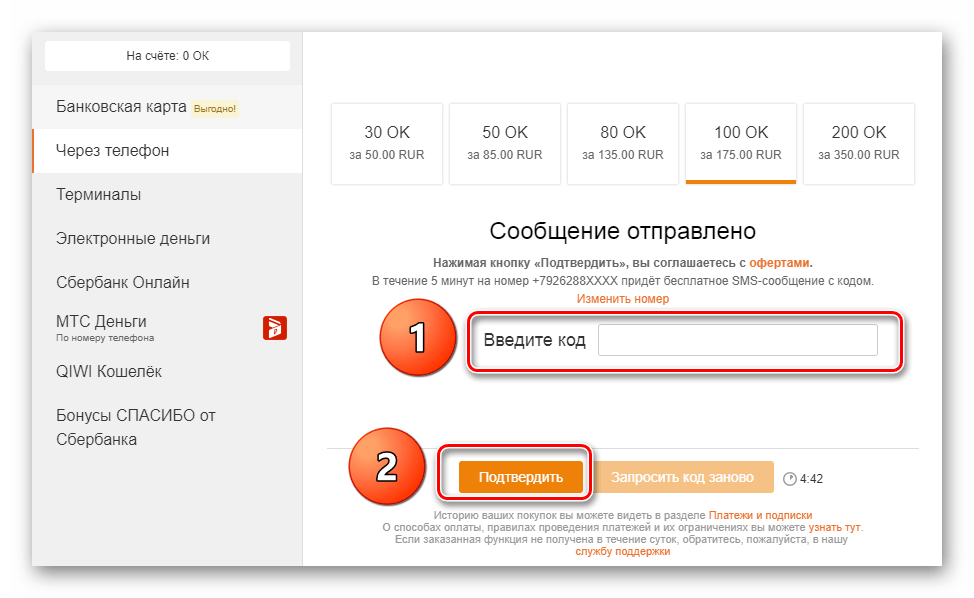 ввести номер и дождаться СМС с кодом операции. Чтобы через телефон оплатить ОКи, на балансе телефона должна быть необходимая сумма в рублях.. Зачисление оков на виртуальный счет займет пару минут