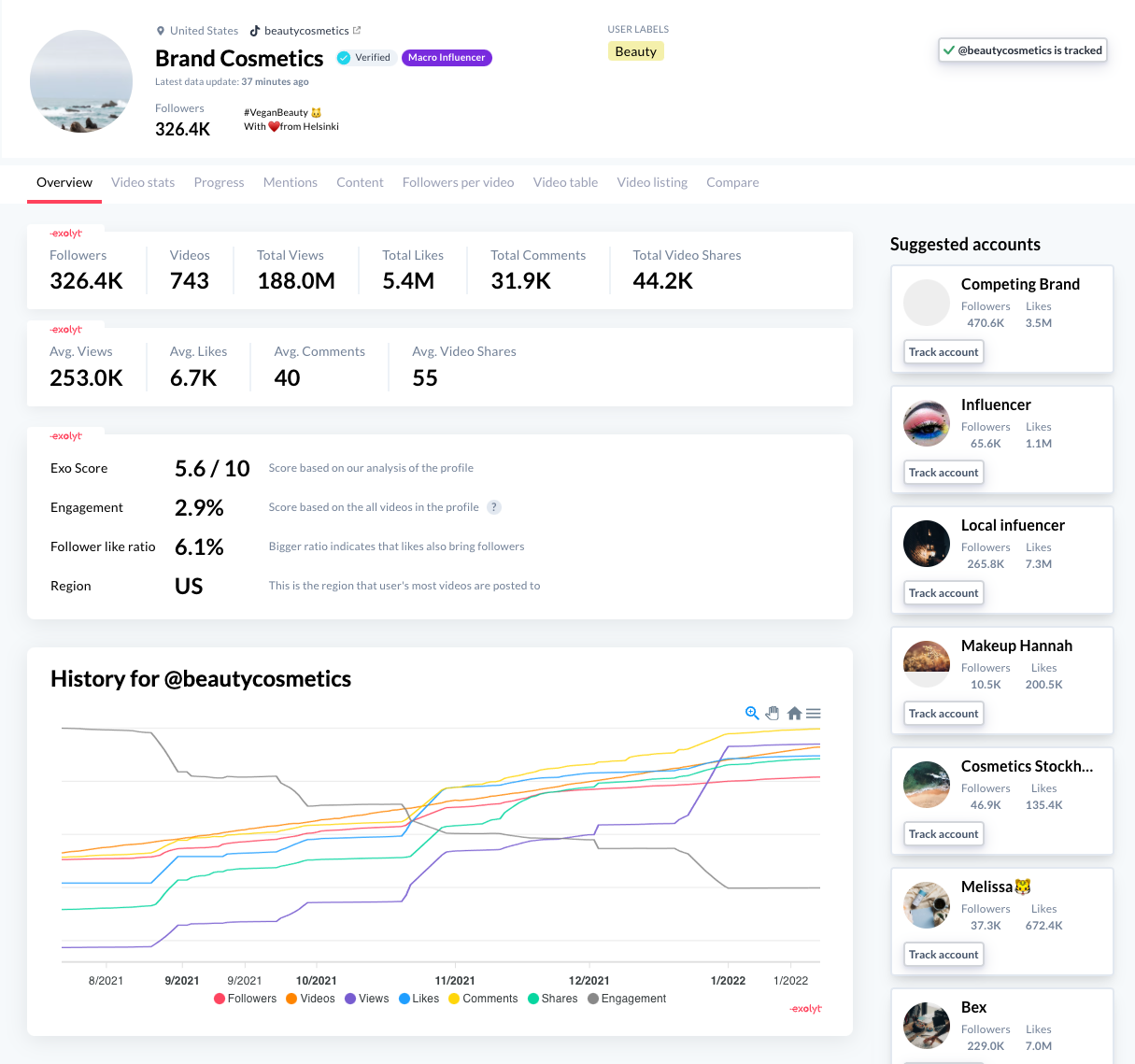 Exolyt is an all-in-one tool for TikTok analytics that offers easy access to the latest trends, automatic monitoring or campaigns, and account reports. Whether you are a brand, agency, or creator, you can rely on Exolyt to get all your TikTok campaign analytics.