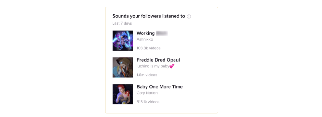 Здесь вы сможете увидеть, какие звуки слушают ваши фолловеры. Может быть, вы захотите использовать эти тренды и сделать следующее видео с этим аудио.