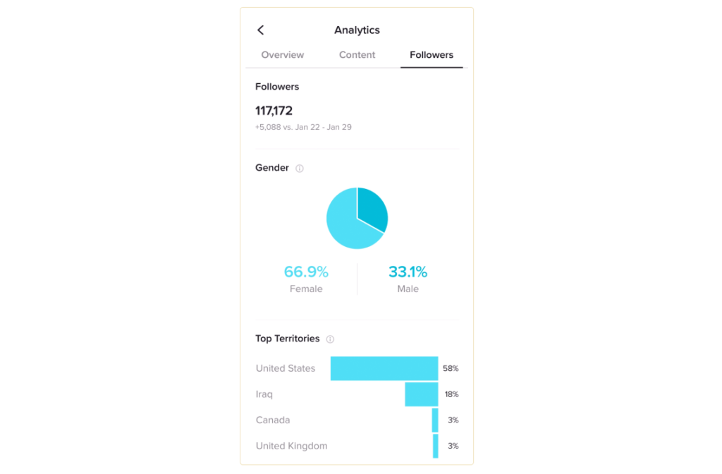TikTok’s internal analytics is quite powerful. Here’s what you can track: