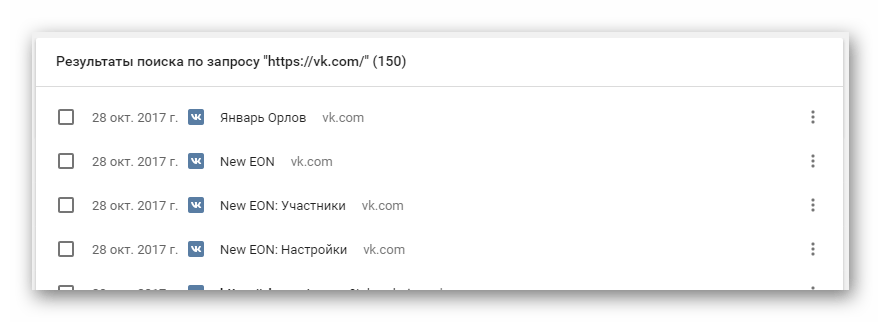 После розыска по ключевому слову вы сможете наблюдать список всех переходов по сайту VK.