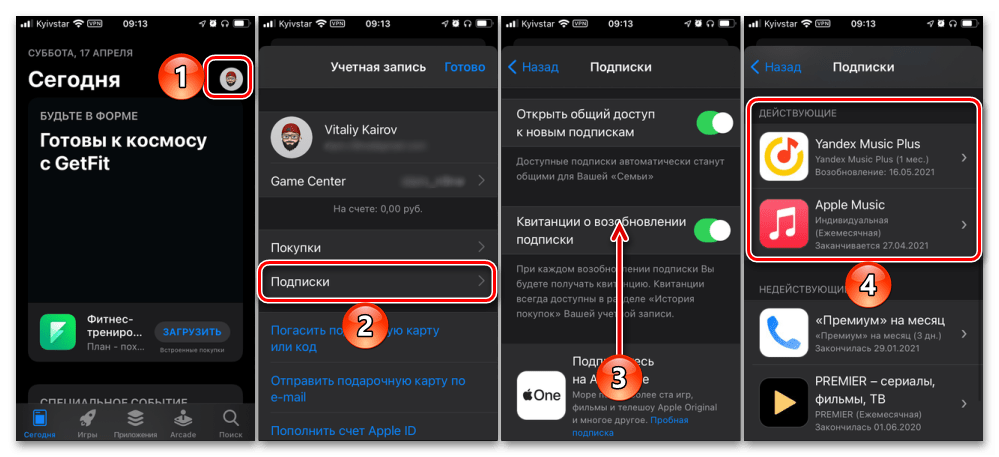 Для просмотра всех активных подписок на сервисы Apple или встроенные внутриигровые покупки следует перейти в Настройки – Учетная запись Apple ID – Подписки. Аналогичное меню доступно в приложении App Store по пути Учетная запись – Подписки.