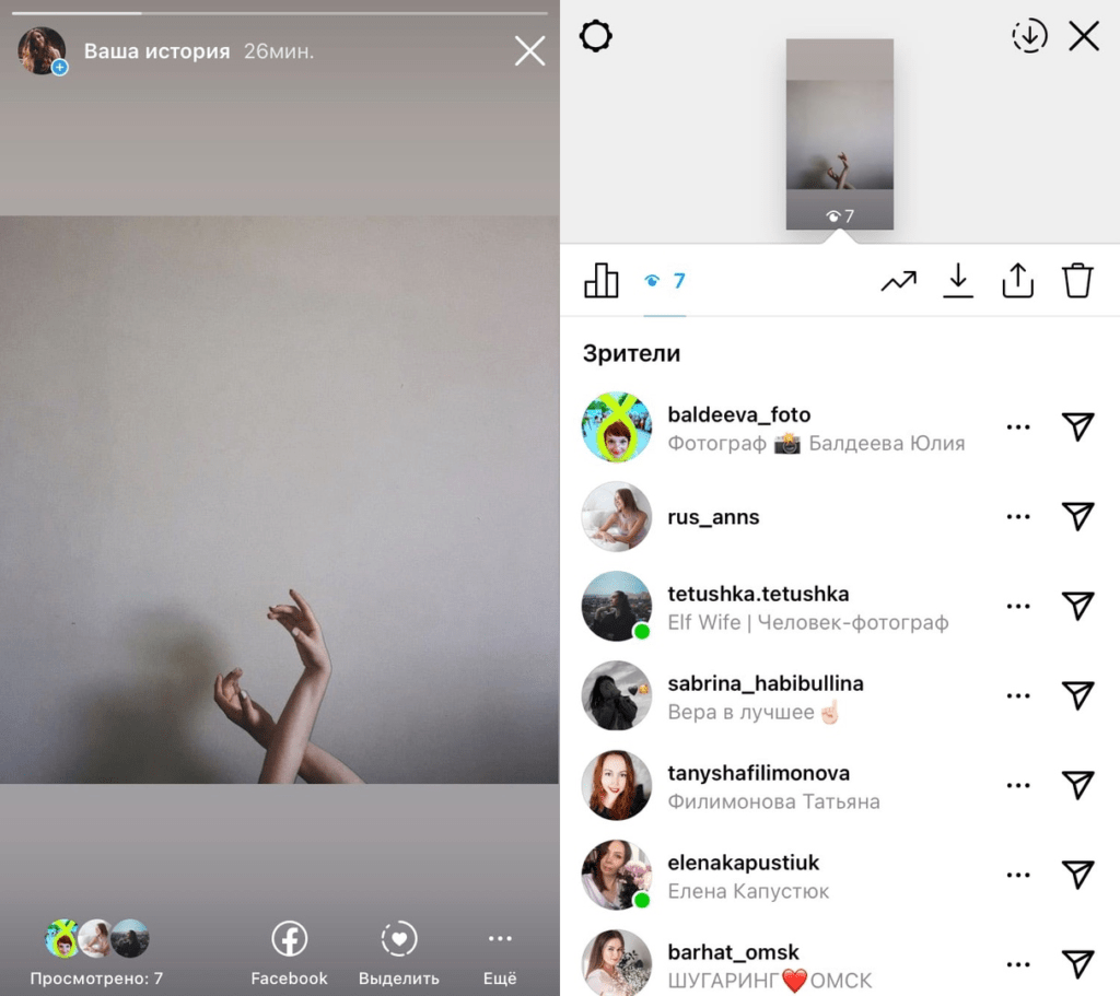 Чтобы собрать данные гостей страницы, достаточно просто посмотреть статистику актуальных сторис. Там отражается список пользователей, которые их просматривали – это и есть постоянные посетители аккаунта. Единственный нюанс – информация доступна только 24 часа, т.е. ровно то время, пока история активна и доступна для просмотра.