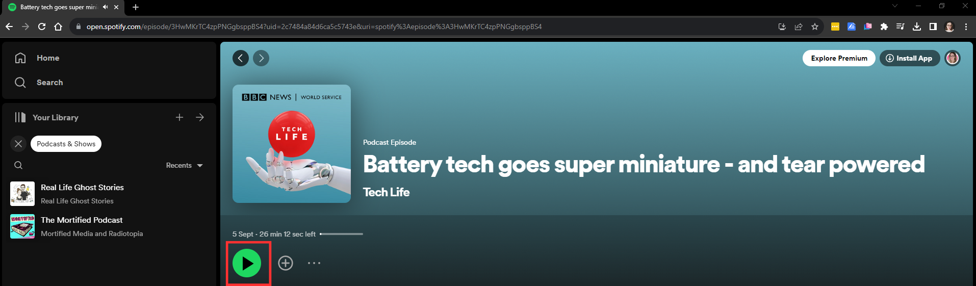 2.Navigate to the Spotify Web Player and search for your podcast in the search bar.