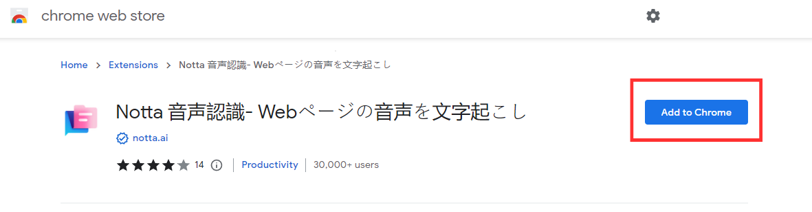 Visit the Notta Chrome Extension Web Store page and click ‘Add to Chrome’.