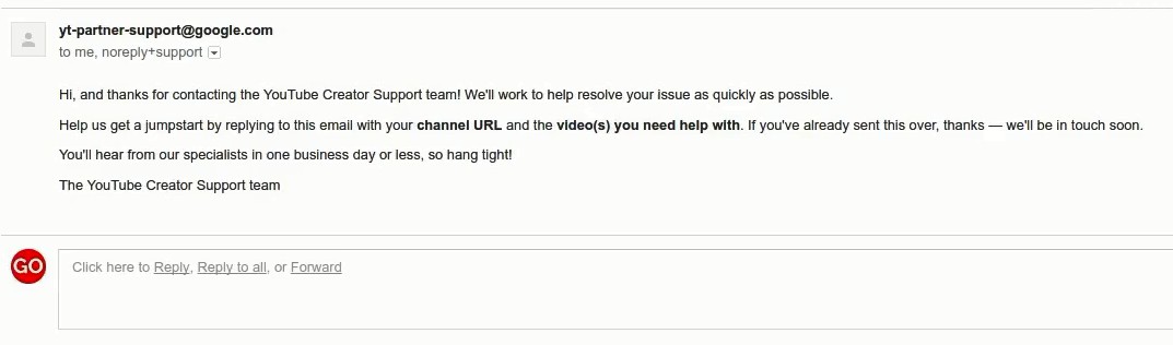 Подождите некоторое время, вы получите электронное письмо от YouTube, сообщающее вам результат обработки события.