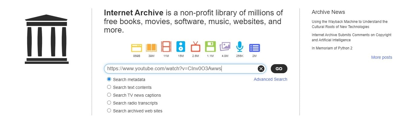 Wayback Machine(archive.org) — полезный интернет-инструмент, в котором хранятся загруженные ранее видео. Таким образом, это простой способ найти удаленные видео YouTube, когда у вас нет другого способа попробовать.