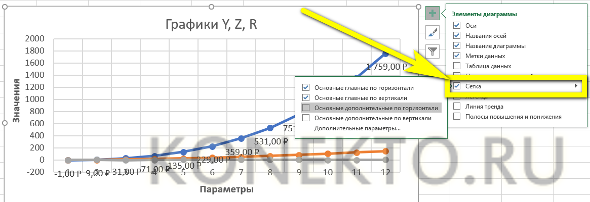 Благодаря легенде на графике определяется принадлежность параметра к тому или иному столбцу.
