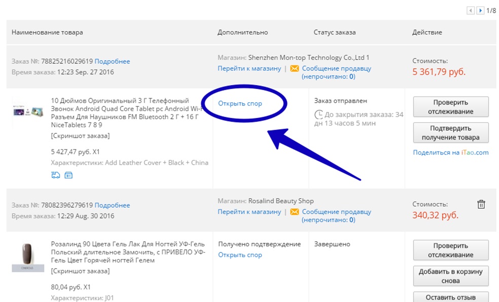 Следите за сроком защиты покупателя. Делать это можно через уведомления, которые приходят постоянным покупателям на почту, или заглядывая в «Мои заказы» на сайте.