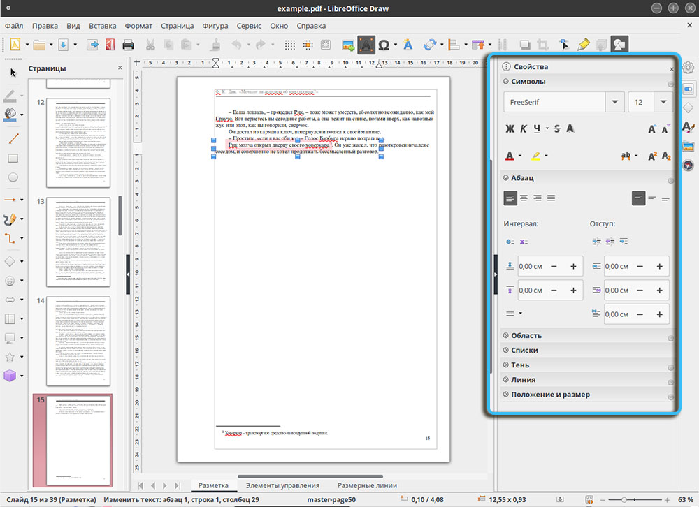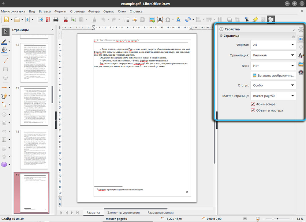 Однако, при использовании текстовых редакторов стоит учитывать некоторые ограничения и недостатки этих программ при работе с PDF. Программа LibreOffice не всегда корректно распознаёт слои документа, что может привести к нарушению структуры макета и перекрытию содержимого другими блоками.
