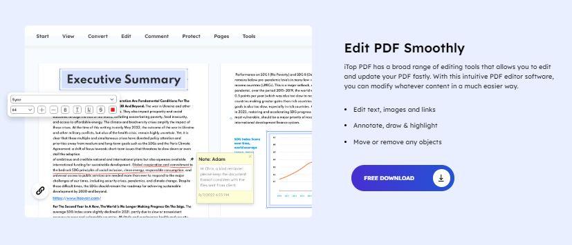 iTop PDF предоставляет пользователю широкий набор инструментов специально для редактирования ваших файлов всего за пару минут. Вы можете вносить изменения, такие как удаление объекта, перемещение элементов, выделение, рисование и редактирование ссылок, содержимого, изображений и видео в файлах PDF. Итак, причина, по которой iTop PDF является лучшим, заключается в следующем: