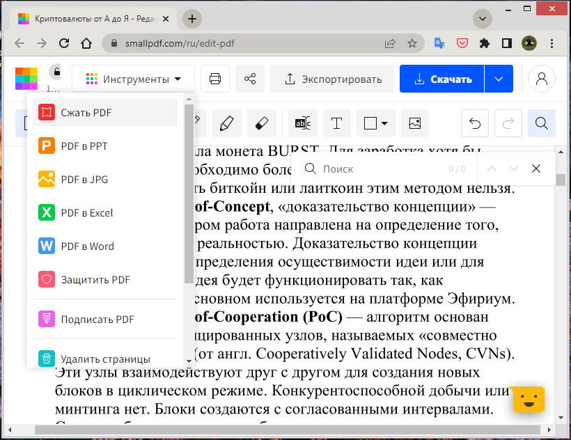 Также Smallpdf позволяет сжимать, разделять и объединять, подписывать и защищать файлы PDF паролем, удалять выбранные страницы, изменять их ориентацию, преобразовывать PDF в популярные офисные форматы и изображения. Сервис не требует обязательной регистрации, работает во всех браузерах.