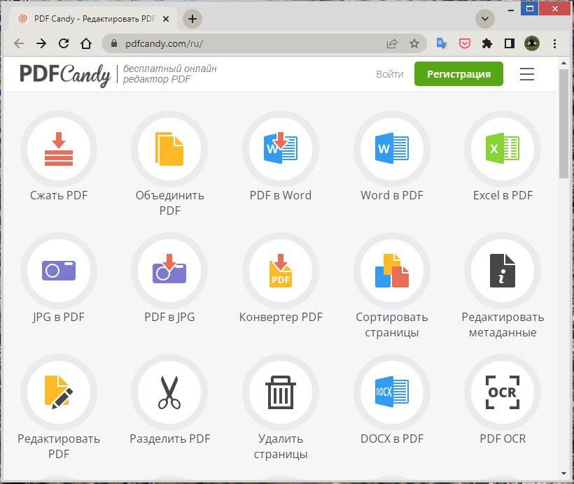Пожалуй, самый удобный из всех бесплатных онлайн-приложений для работы с документами формата PDF. Приложение имеет простой модульный интерфейс и качественно проработанное юзабилити, каждый из 47-ми модулей в PDF Candy заточен под выполнение определенных задач. Возможности веб-программы включают разделение и объединение, создание и конвертирование PDF, добавление колонтитулов и нумерацию страниц, извлечение из документов PDF текста и изображений.