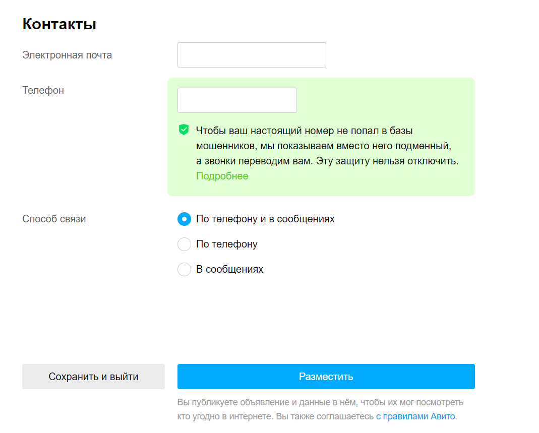 После того, как вы заполнили все пункты, нажмите кнопку «Разместить».