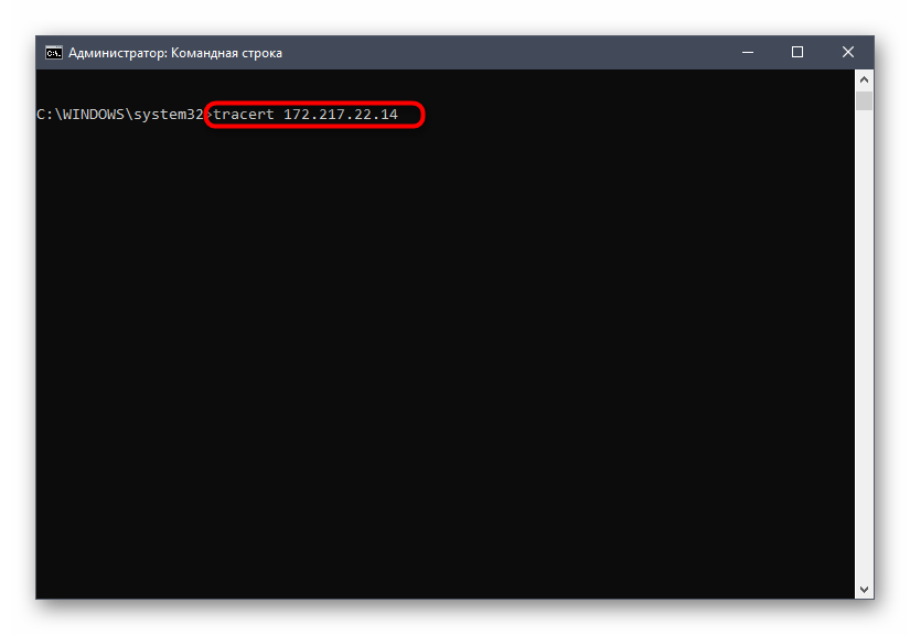 - Вызовите «Командную строку» и введите там tracert IP-адрес.