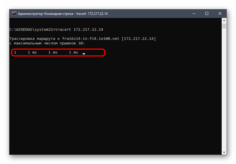 В результате выполнения команды на экран выводятся адреса промежуточных маршрутизаторов и время отклика каждого из них. Если все пакеты прошли промежуточные отрезки без проблем, неполадок нет. А если в передаче пакетов возникают проблемы, Вы можете увидеть, на каком промежутке маршрута это происходит.