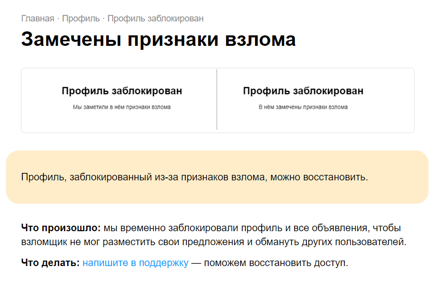 Если по-человечески рассказать сотрудникам Авито, почему вы рассылали спам или почему информация в вашем объявлении оказалась недостоверной, служба поддержки может войти в положение и вернуть вам доступ к профилю. Но это не гарантировано — все зависит от ситуации и сотрудника, который будет рассматривать ваш запрос. В справке Авито никак не регламентируется снятие блокировки в таких случаях, но есть кейсы, когда продавцам удавалось вернуть Авито аккаунт, даже если раньше они нарушали правила.