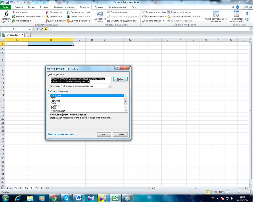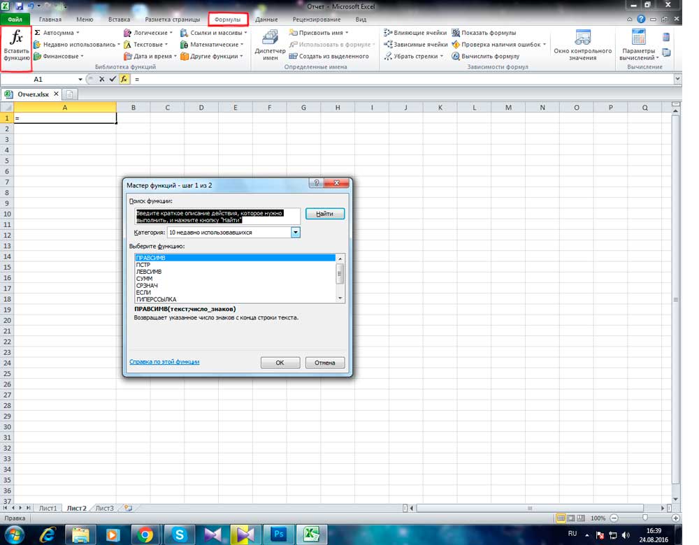 - Перейдите к формуле ПРАВСИМВ и убедитесь, что все действия произведены правильно.