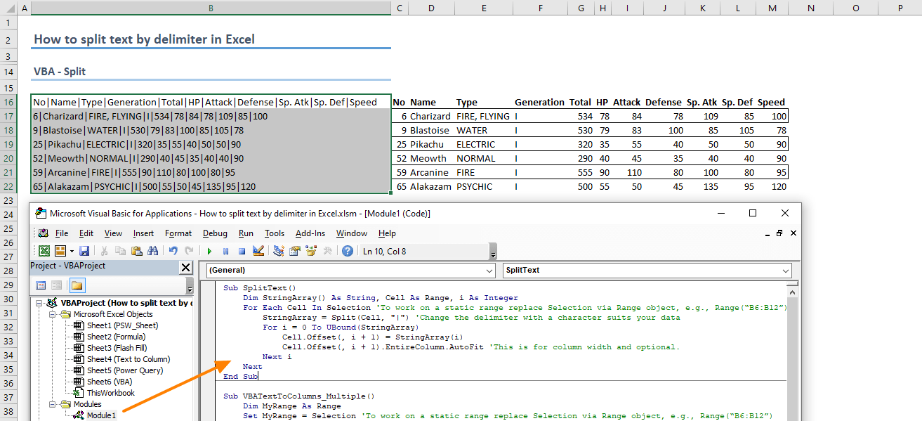 VBA — это последний вариант разделения текста, который мы хотим показать в этой статье. Вы можете использовать VBA двумя способами разделения текста: